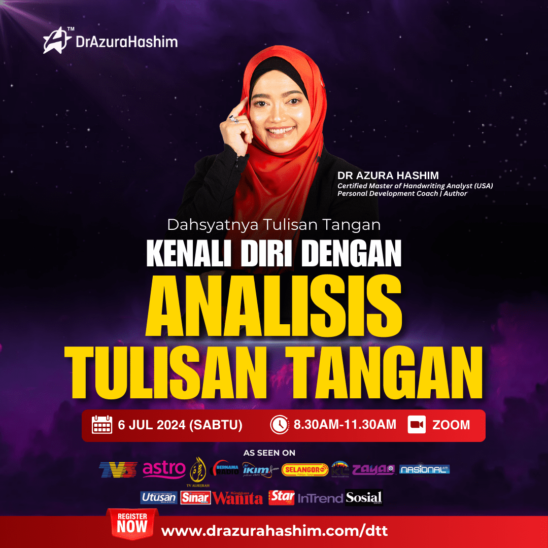 Tapi bagaimana? Dr Azura akan bongkarkan bagaimana anda boleh faham karakter manusia sepantas 5 minit melalui analisis tulisan !